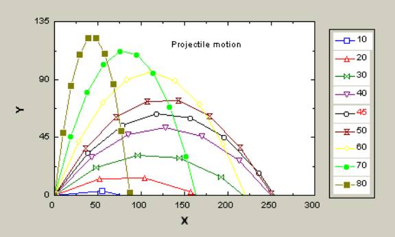 coordinate system (x=0,y=0). Then, the position of the projectile as a function